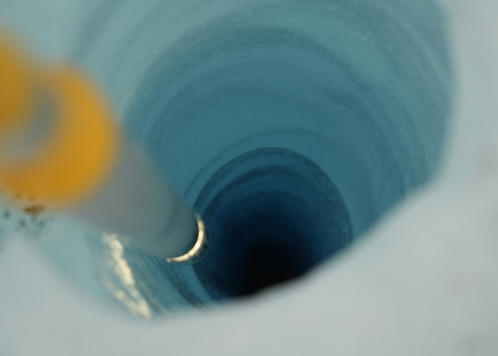 "We set up a small pit for sending signals and a hole in the ice wall below, both filled with water to enable acoustic connections between the equipment and the ice."
