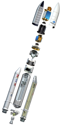 Ariane 5, developed and operated by Arianespace for the European Space Agency (ESA), is the world reference for heavy-lift launchers, capable of carrying payloads weighing more than 10 metric tons to geostationary transfer orbit and over 20 metric tons into low-Earth orbit – with a high degree of accuracy mission after mission.