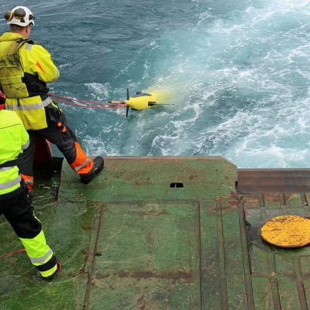 Both surface drones are equipped with echo sounders from Kongsberg Maritime, whilst the Seaglider makes use of a hydrophone that listens for sea mammals or sound pollution.
