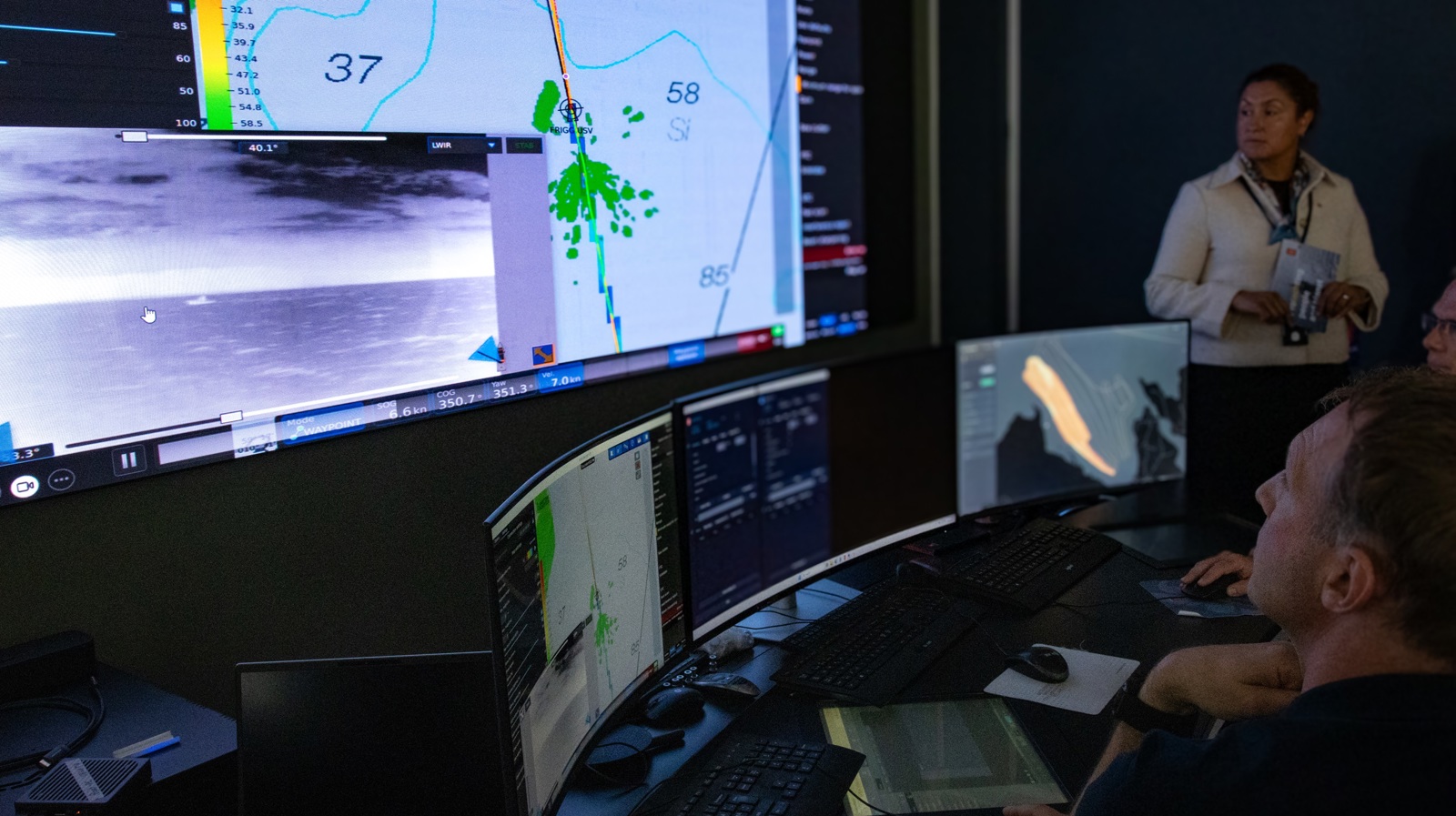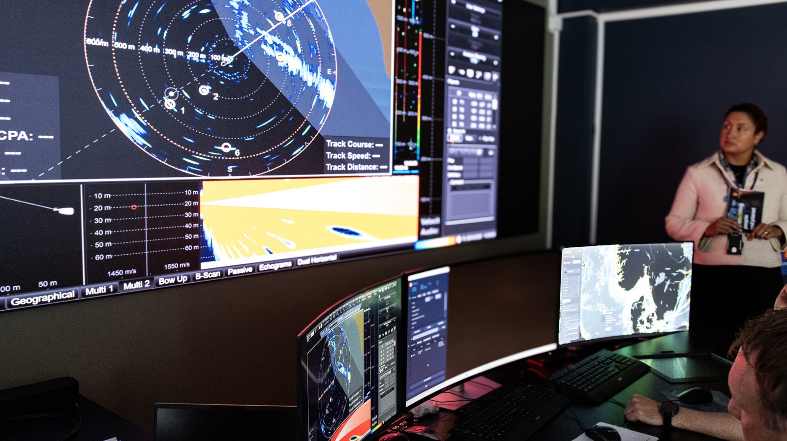 They were shown simulated scenarios where KONGSBERG systems use real-time data and imagery from radars, satellites, and underwater sensors to enhance situational awareness, identify threats, and support operator training.