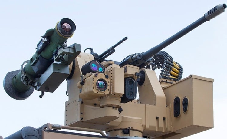 PROTECTOR RS6 is an up‑gunned remote weapon station that mounts lightweight medium‑caliber cannons in combination with missiles and a coaxial machine gun. It is designed for heavier tactical vehicles, armored personnel carriers, and combat vehicles.
