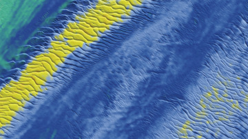 "Snake-skin sand waves", submitted by Kongsberg Discovery using data courtesy of John Hughes Clarke at CCOM UNH. Product: EM2042.