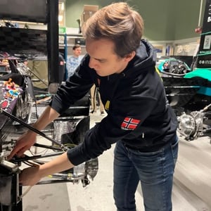 Serveral NTNU students have been employed by KONGSBERG after completing their studies. Kristian Sandaa is one of them. Having previously participated in both Ascend and Revolve projects, he is now employed as a mechanical engineer in Division Land Systems. Just a few years ago, Sandaa was proudly presenting work to KONGSBERG representatives at the Revolve workshop. This time he visited his old academic institution to convey knowledge about mechanics, inform about career opportunities, and conduct speed interviews for summer jobs. He found it fascinating to come back and witness the evolution of the projects he was once a part of. "It's impressive to see the valuable, and especially relevant, experience the students gain from these projects. Much of what I do today mirrors their work - from conceptualization to prototype and production," says Sandaa.