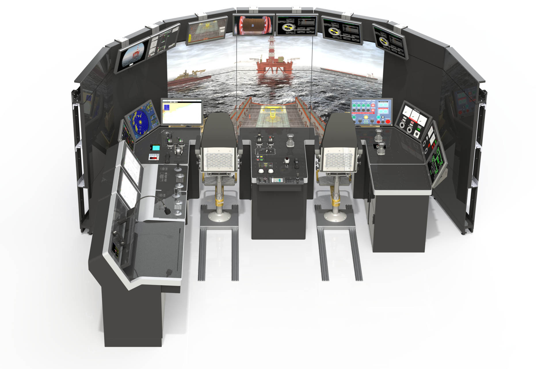 - Full‑mission DP simulator with high‑fidelity offshore bridge environment