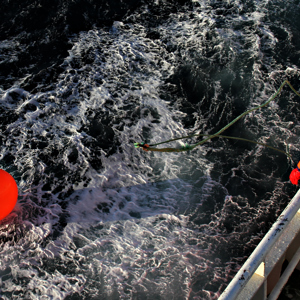 We have now sailed far off the coast and dawn is about to break. The sun is on its way up from behind the mountains, sending a band of red light to announce its arrival. At the same time, the crew is on their way up from below deck. After three and a half hours of sailing out to the fishing grounds, Oddvar has now found fish on the echosounder. It is time to cast out the Danish seine, a special net used to fish from the seabed which can go down to 100 metres. ” First we have to cast out the buoy, then we let out the ropes. They are 18-1900 metres long. Once that has been done, the nets are released and attached to the ropes which are thrown out in a arch. It’s important not to throw the nets out against the current,” explains Oddvar, pointing at the screen in the pilothouse which displays the current.
