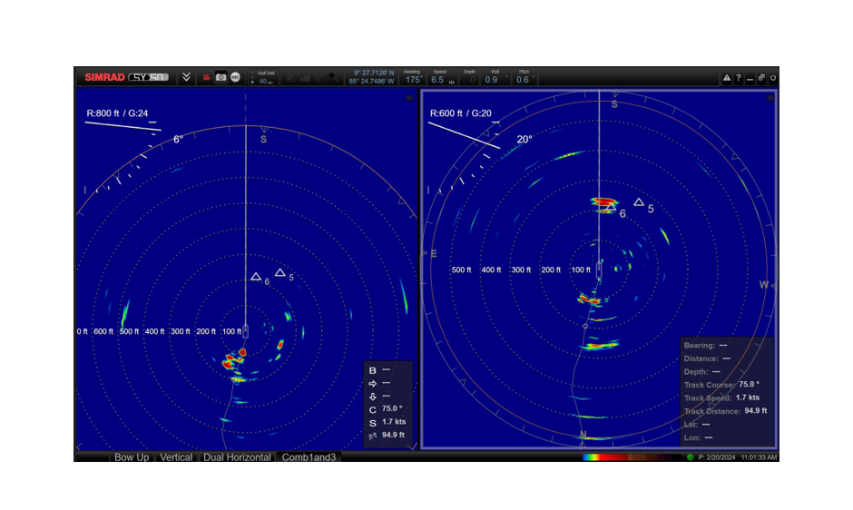 “Used in dual, split-screen mode – with the ability to operate each screen independently for tilt, range and so on – QuadPing sends out four transmissions at once. One is shown on the first screen, as a reference point, while the other three, each with a separate, defined angle of tilt, are stacked on the second screen.