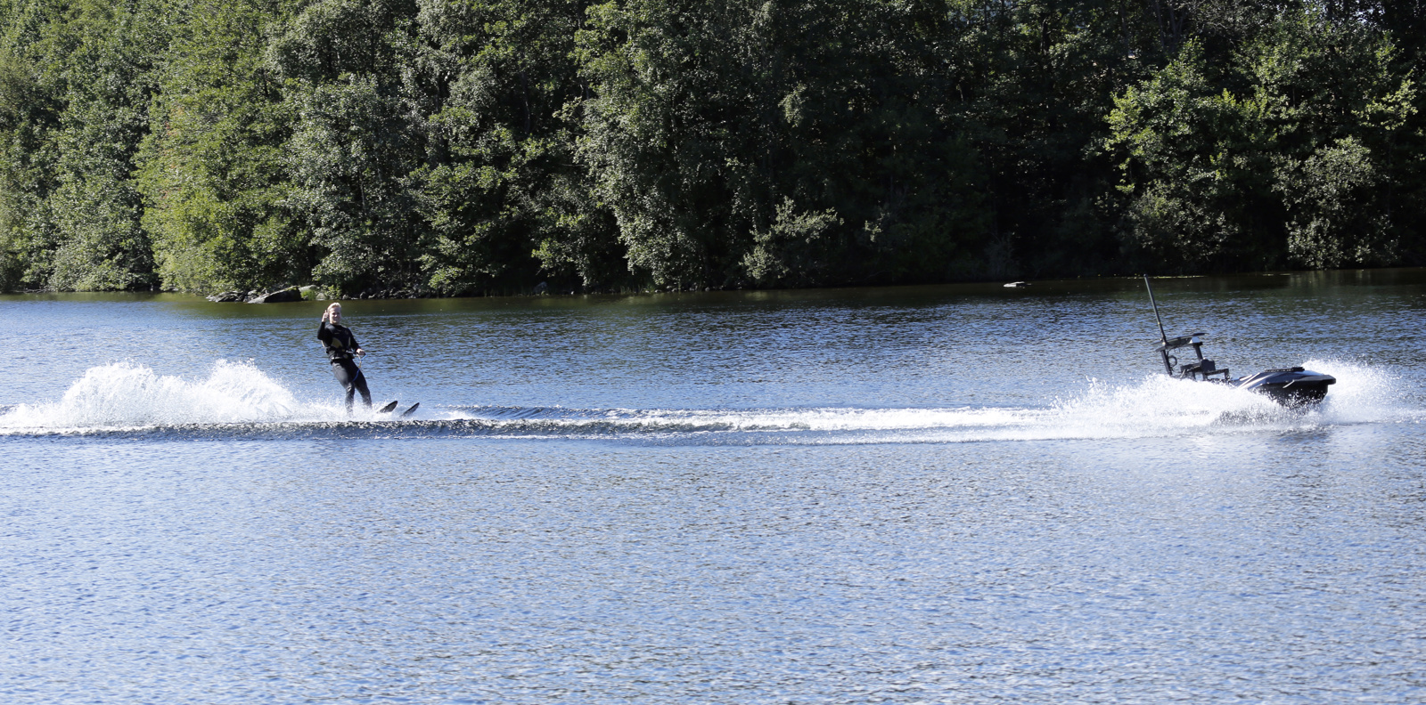 At the end of the summer project, the students sent out an invitation to a demonstration of the vessel on the Eikeren lake, fifteen minutes drive away from Kongsberg. The attraction of the event was water skiing. According to the students themselves, there are no other documented cases where an automated vessel has pulled a person on water skis. Aksel Øvern is, therefore, probably the first person to demonstrate this special form of water sport.