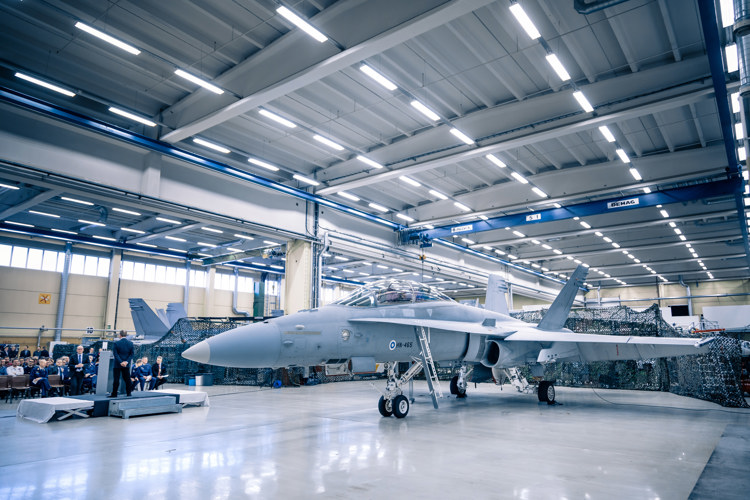The Finnish Air Force land their F-18 fighter planes and Hawk training aircraft here at Patria’s facility in Halli for both heavy and light maintenance. Photo: Patria.