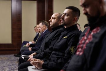 Sandvik og hans ukrainske motpart Rustem Umerov deltok på seremonien, da KONGSBERG markerte åpningen av sitt nye kontor i Kyiv.