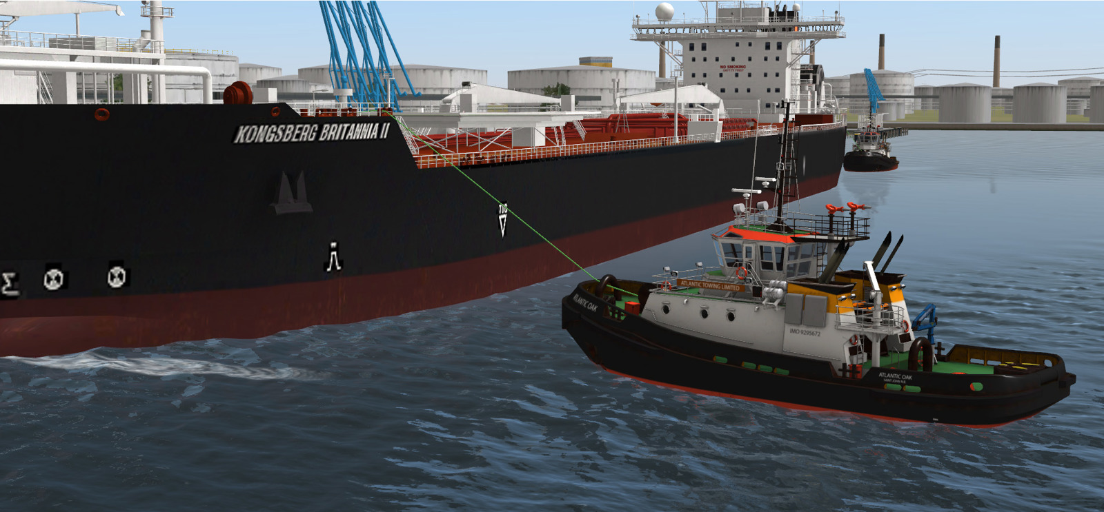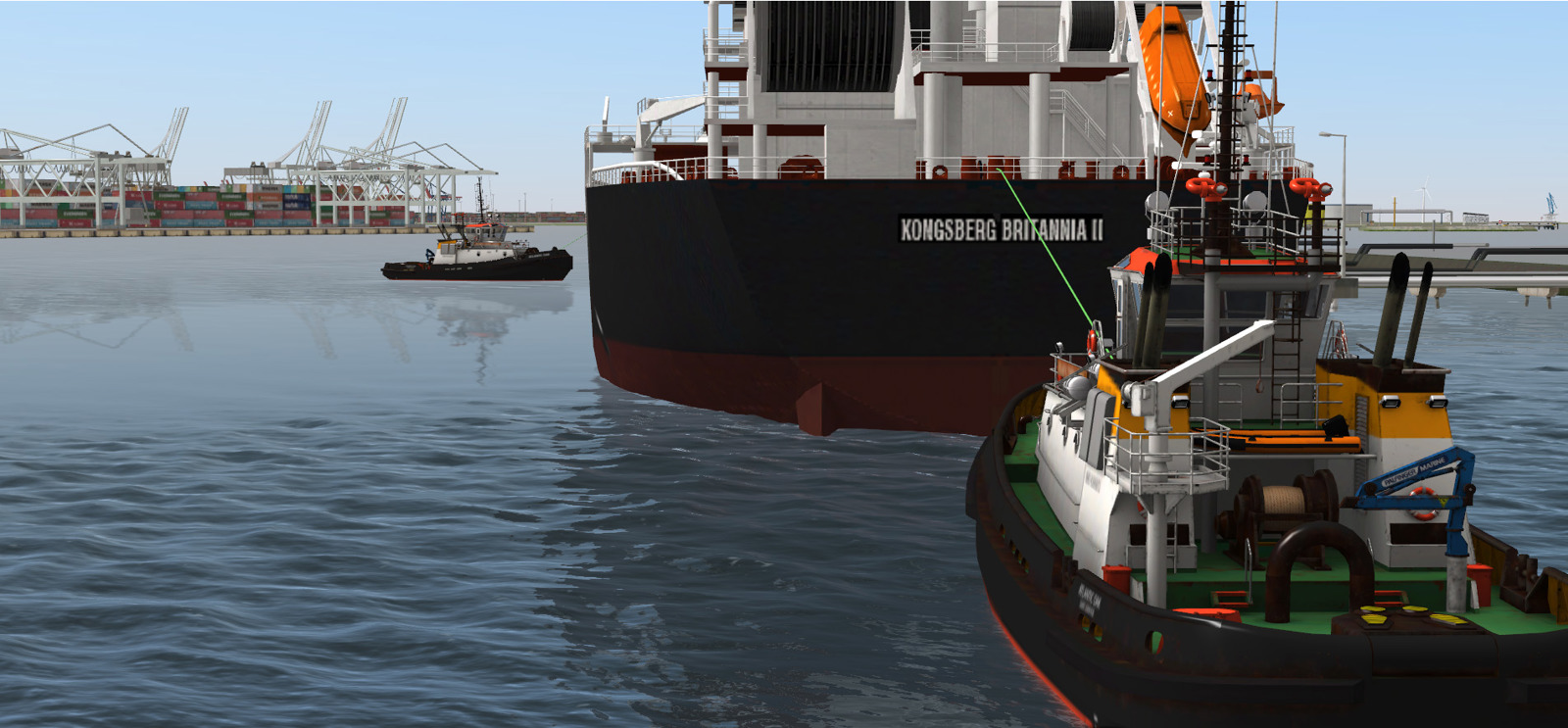 K-Sim allows operators to practice tug handling, such as escorting a large container vessel