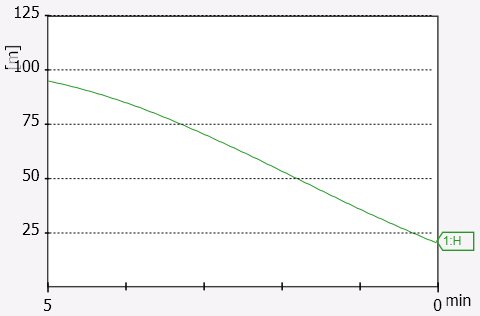 The Trend views are opened by clicking the icon in the top right corner of each Sensor view rectangle. Each trend view comprises a graph. The graph displays the historic development of the information provided by the sensor.