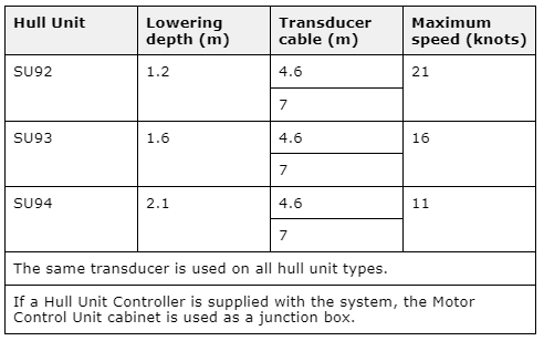 The Simrad SU90 sonar system can be provided with one of the following hull units.