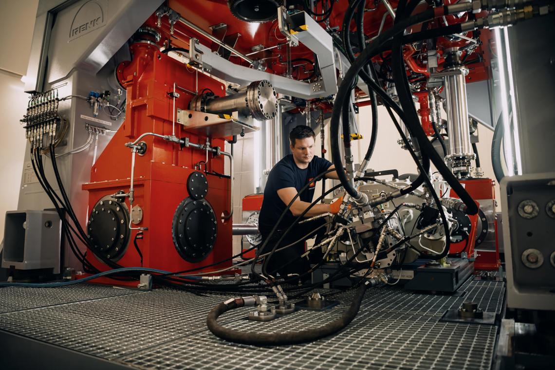 KONGSBERG has established a 1.200 m² (13.000 ft²) test facility for dynamic components. In this facility, we have installed a flexible multi-purpose test bench (MTPB) capable for the testing and verification of several types of helicopter transmissions and gearboxes.