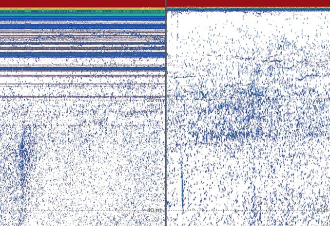 Example of ES18-11MK2 data improvement before (left) and after (right) that the ringing had been reduced. The improvement allows for collecting usable data at shallow depths.