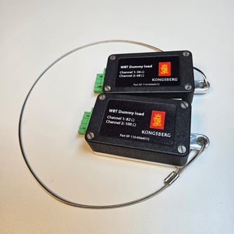 The dummy loads can replace the transducers when testing the full functionality of the WBT. Two types of dummy loads are offered: One shielded dummy load for the standard WBT, and one dummy load with SubConn connector for WBT Mini, WBT Tube, WBAT, and EK80 Portable.