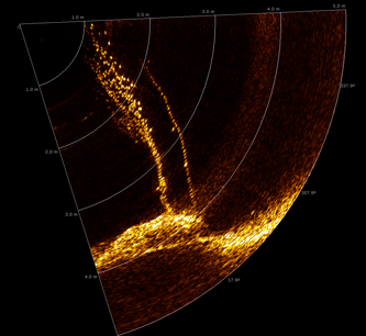 Imaging data gathered from the M3 Sonar HF is high resolution, with cm-level feature detection capabilities that can be exported to a GeoTiff image. Features can be detected in imagery data that are not apparent in traditional bathymetric data. In addition, using the M3 Sonar HF with a third-party software driver, such as SoundTiles software, provides automatically-mosaiced images.